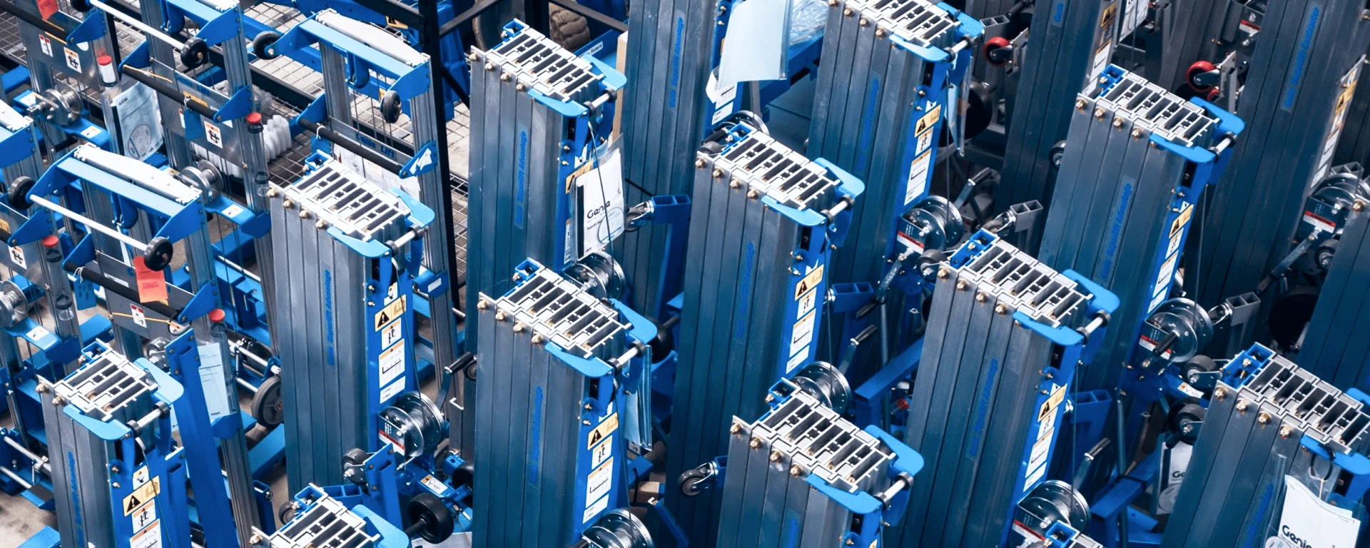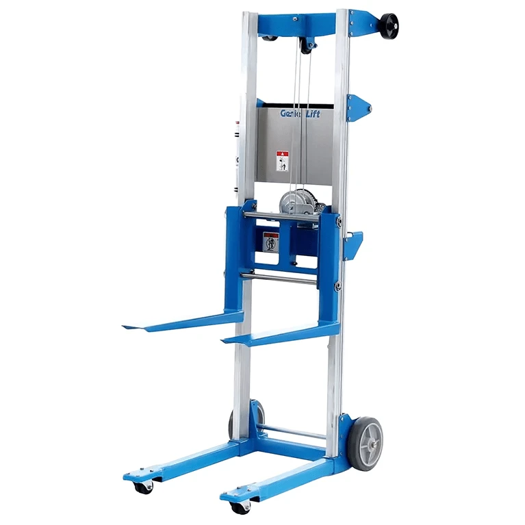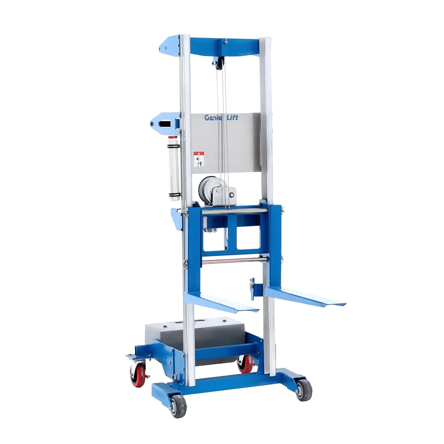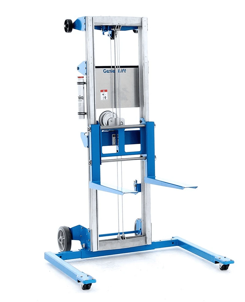Genie material lifts are versatile tools for positioning and lifting material to a range of heights in various environments. Commonly used for construction, installation tasks and warehouse jobs.