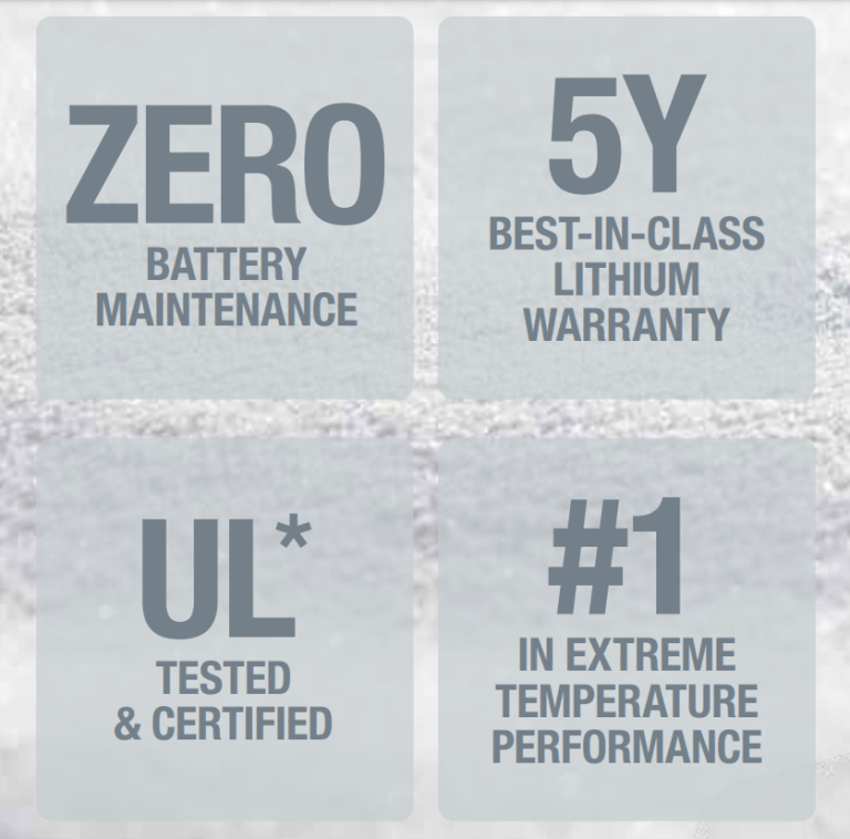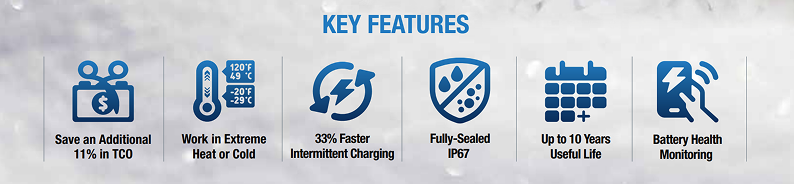 The Zero-maintenance battery is fully sealed and has an IP67 rating to protect from water and dust contamination