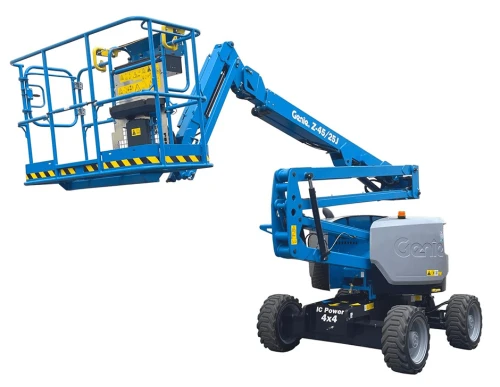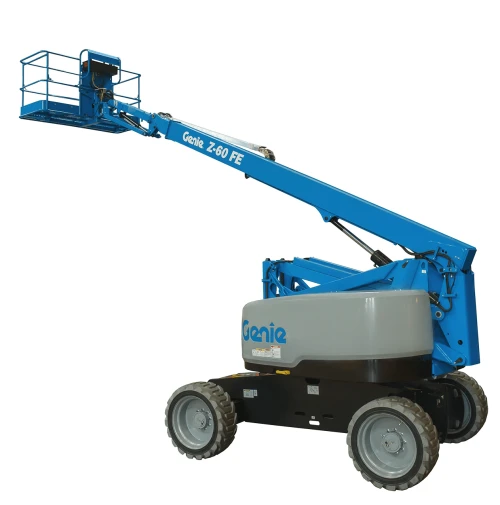 There is a range of Genie articulating boom lifts that can be used for indoor and outdoor use. Electrically powered models such as the Z45 DC are quiet and emission-free, making them ideal for indoor work, but can also be used outside. Models such as the Z62/40 are generally used outdoors for their rough terrain capabilities, powered by a diesel engine.