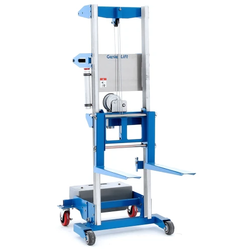 A Genie Lift, also known as Genie GL, is a manually operated material lift built for lifting and lowering objects from a range of heights.