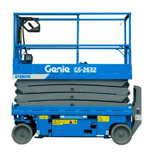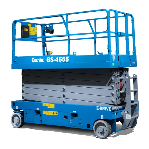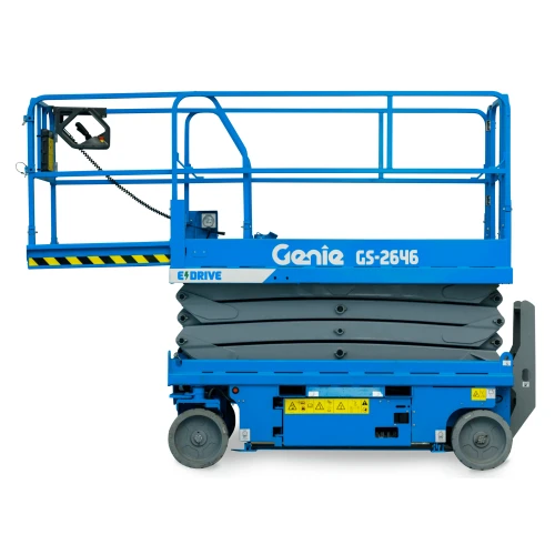 Electric Genie Scissor lifts are quiet, zero-emission machines, making them the perfect choice for indoor noise-sensitive areas, equipped with long-lasting batteries. Rough terrain scissor lifts, such as the GS-3369RT, are built for outdoor jobs with uneven ground. Consider your work environment and ground conditions to get the best-suited model for you.