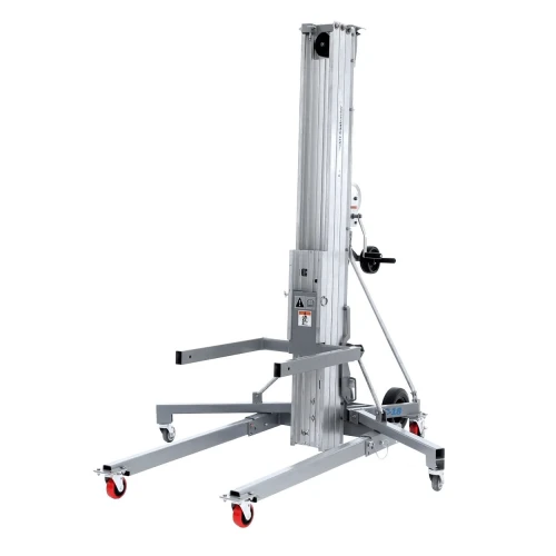 The Genie Superlift Contractor, also known as the SLC, is Genie's original Superlift. It is a manually operated material lift built for heavy tasks involving lifting and lowering loads of up to 295kg.