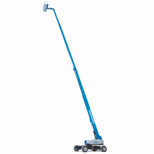 A Genie telescopic boom is a mobile elevated work platform (MEWP) featuring a straight, extendable boom designed to lift operators to significant heights, covering large distances. Commonly used in construction, maintenance on tall structures, and industrial work, excelling at accessing high areas.