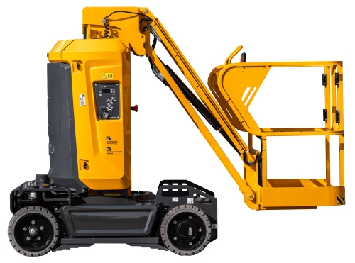 Vertical mast booms are compact self-propelled aerial work platforms designed for working height in tight spaces. Most models are equipped with a jib providing horizontal outreach, allowing operators to work over obstacles.
