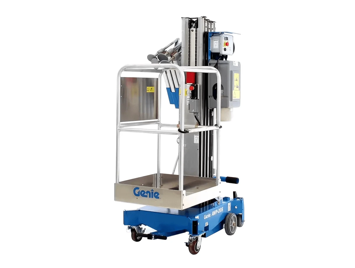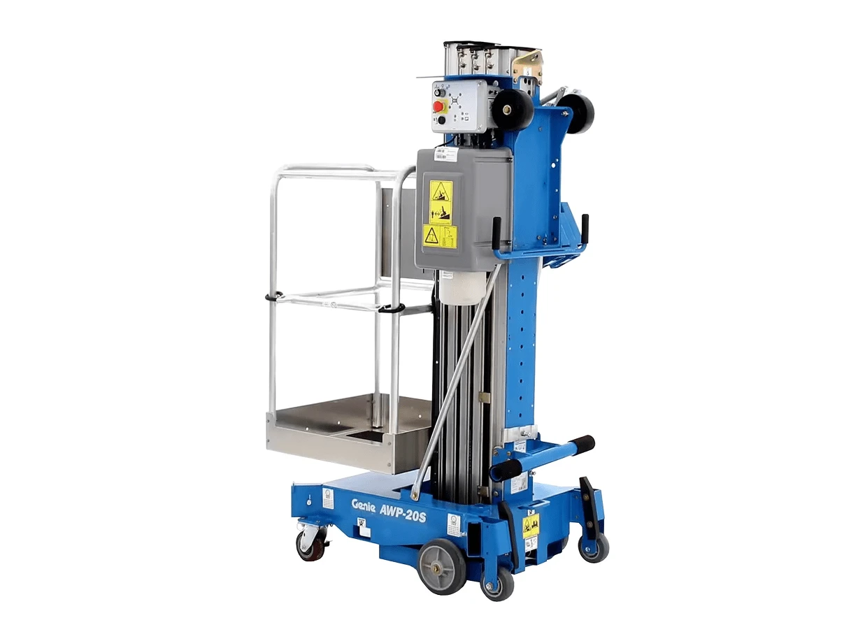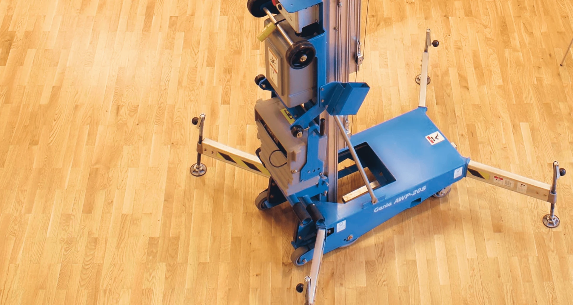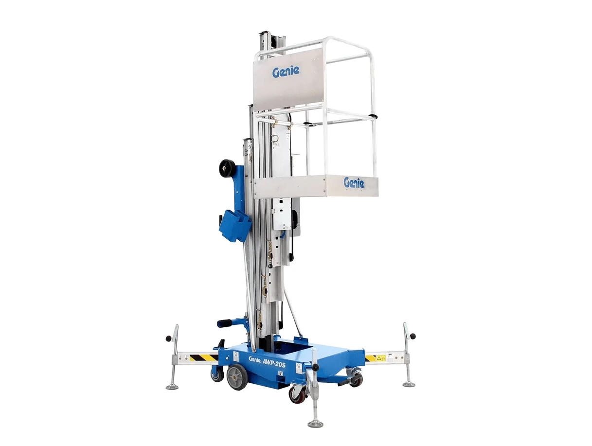 The Genie AWP20S is a portable push-around lift that is commonly used for maintenance tasks and stage setups. The lightweight design allows it to be used for projects that involve sensitive flooring.