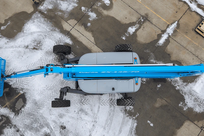 The ZX-135/70 is equipped with Genie's X-chassis system, which allows the axles to extend to provide stability and retract for a narrow profile.