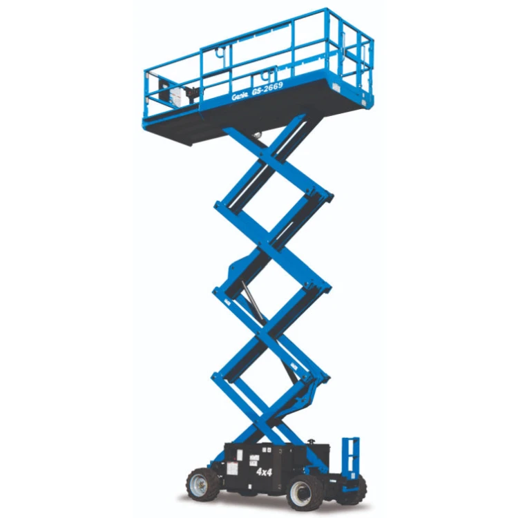 The Genie GS-2669 RT rough terrain scissor lift has a load capacity of up to 680kg.