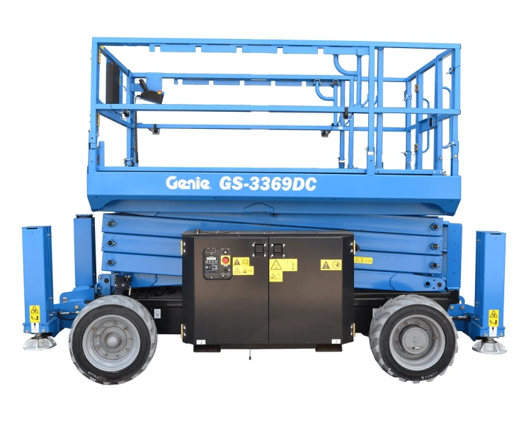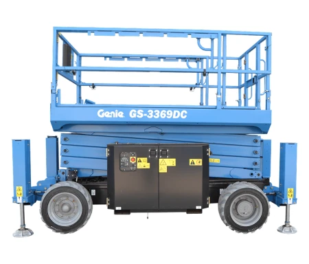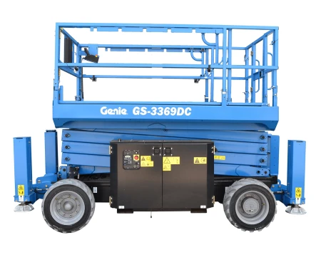 Offering quiet, zero-emissions operation, with rough terrain capabilities, the Genie GS-3369 DC electric rough terrain scissor lift is excellent for both indoor and outdoor use.