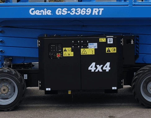 The Genie GS-3369 RT has 35% gradeability, which allows it to easily traverse over slopes, ramps, and rough terrain.