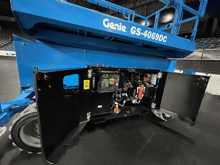 Provides easy access to the scissor lift's main components, allowing for easy maintenance and servicing.