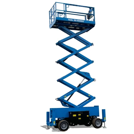 The Genie GS-4069 DC rough terrain scissor lift has zero-emission, quiet operation without the expense of losing power or functionality. With a maximum working height of 14.30m, it is a great solution for tough tasks in construction, installation, inspection, and maintenance work on indoor and outdoor job sites alike.
