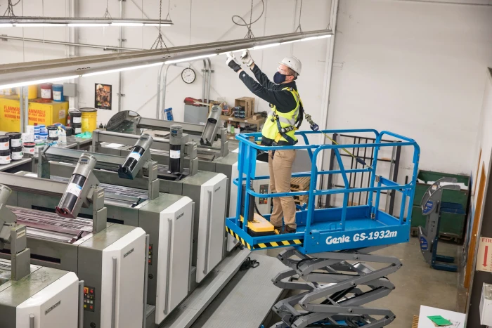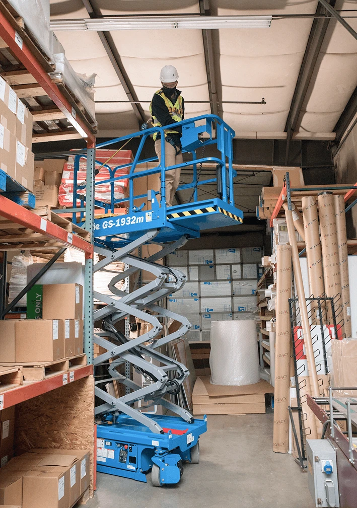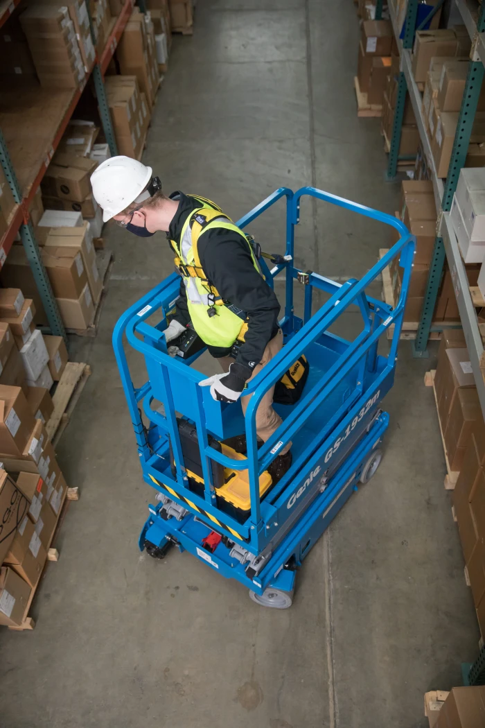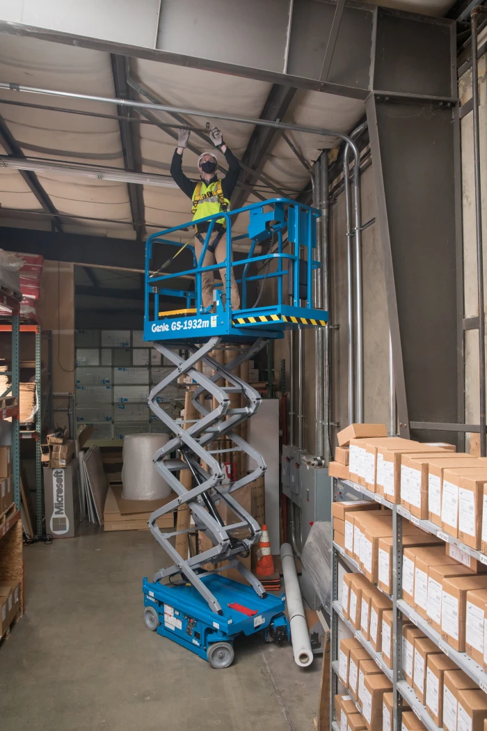 The Genie GS1932m scissor lift weighs only 1179kg, making it a good option if floor loading limits are a concern.