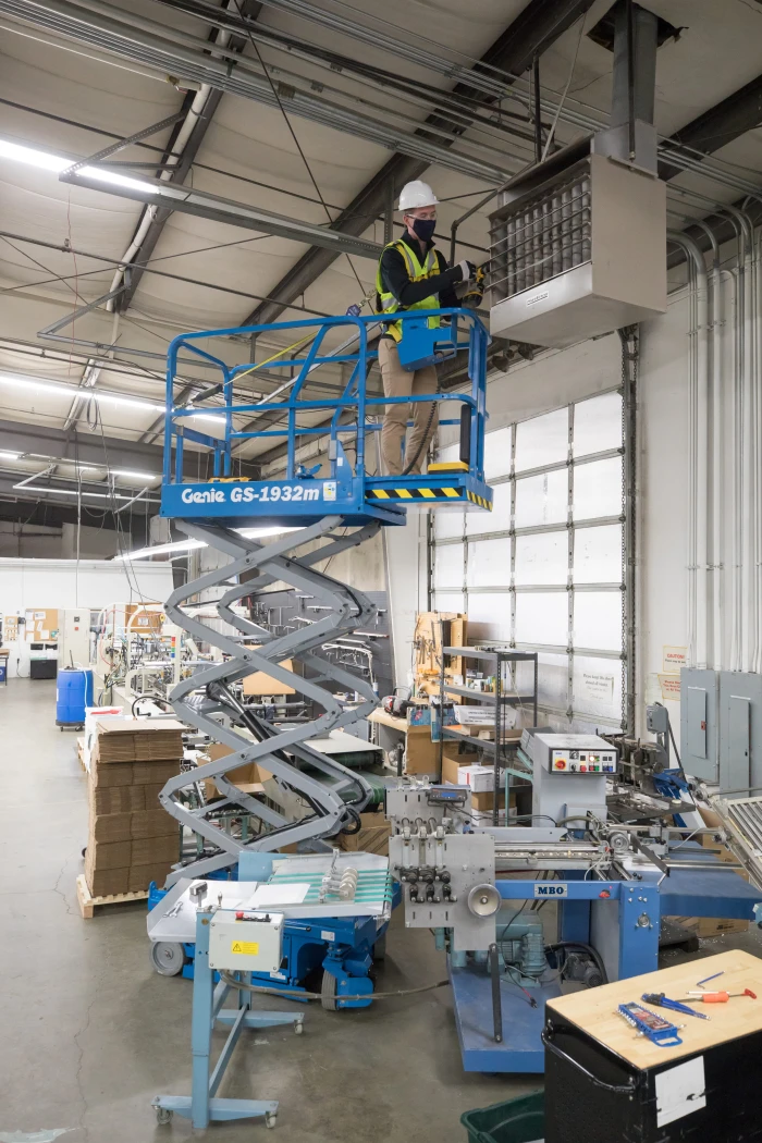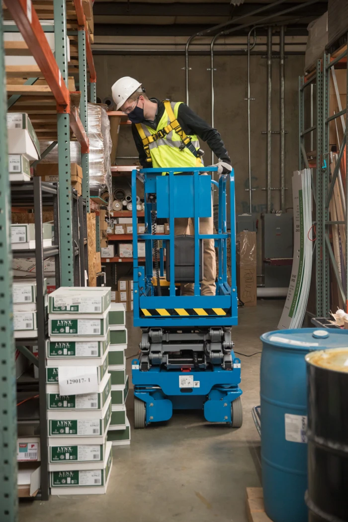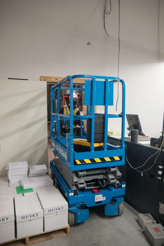 Built-in forklift pockets enable the scissor lift to be loaded, unloaded, and transported safely.