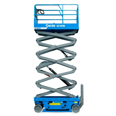 Its compact size, durable construction, and improved efficiency make the Genie GS-3246 the ideal option when needing a high lift capacity scissor lift to be used in confined areas.