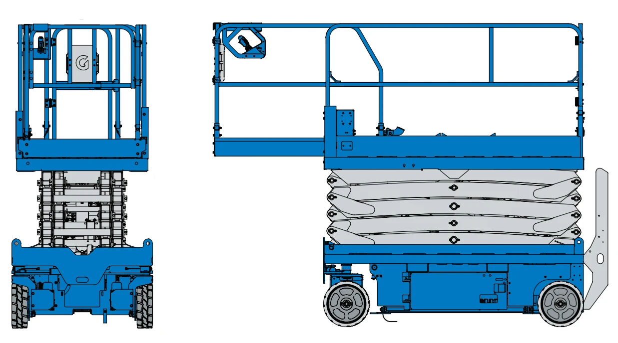 The scissor lifts electric drive system enables quiet and clean operation, producing no emissions, making the GS-3246 suitable for indoor use in sensitive areas such as hospitals, schools and office buildings. With its narrow width the GS-3246 is can to fit through standard double doorways with the rails folded.