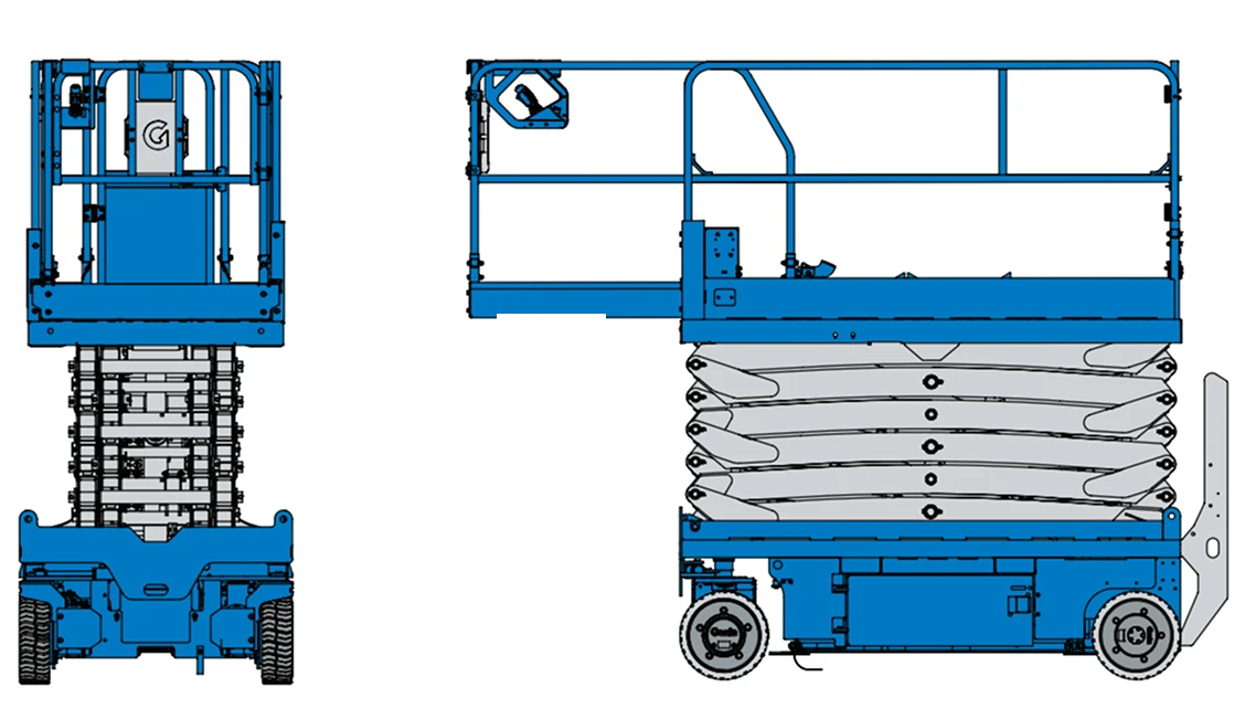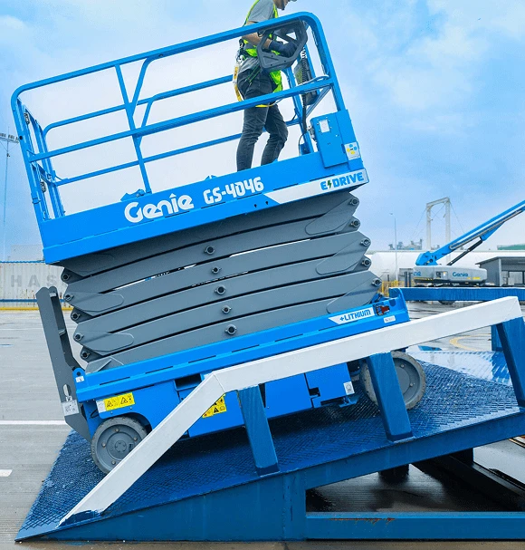 Built-in fork lift pockets allow the Genie scissor lift to be easily loaded, unloaded, and transported.