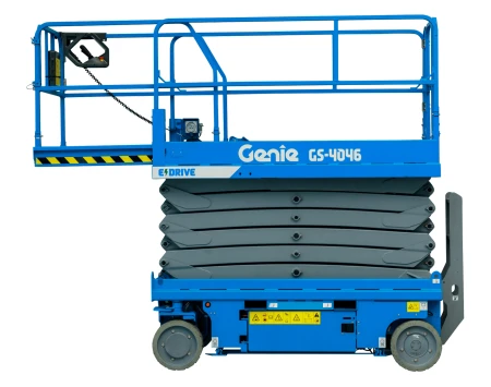 The Genie GS4046 electric scissor lift delivers unmatched driving performance and industry-leading runtime per battery charge.