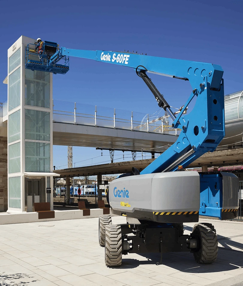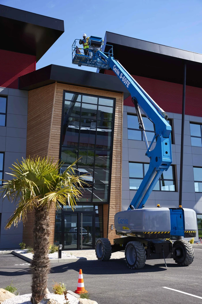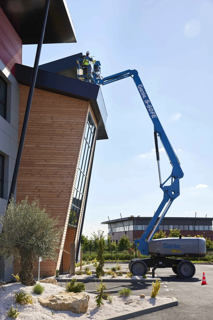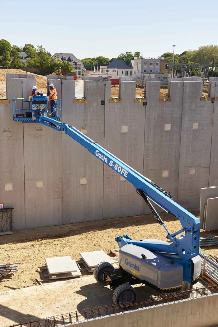 With a 1.83-meter jib and a working range of 130°, the Genie S-60 FE provides precision positioning, allowing operators to access out-of-reach places in a quick and safe manner.