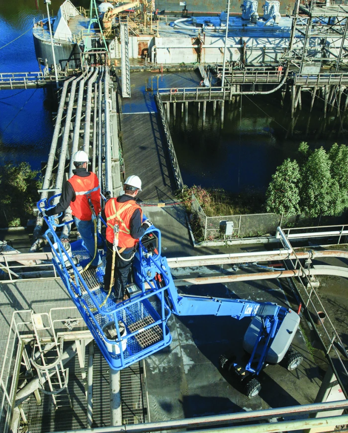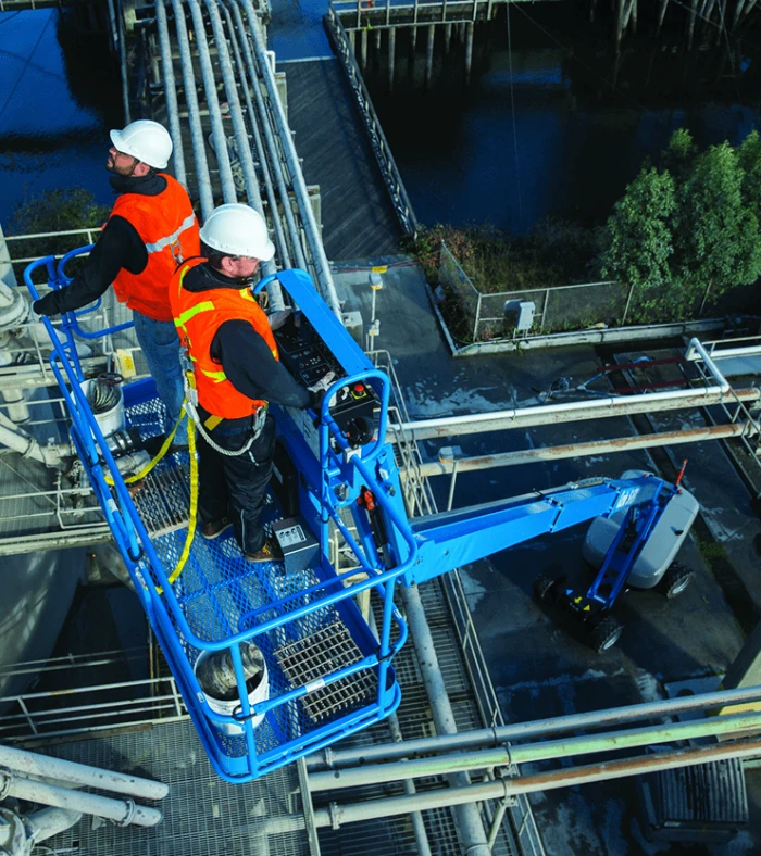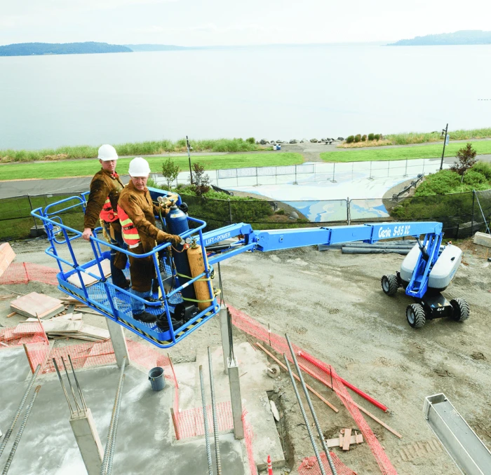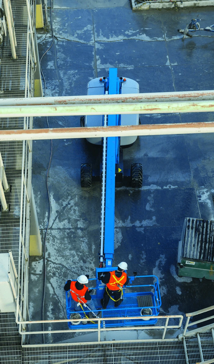It provides both reach and flexibility, with a 1.52m articulating jib to position its operators around obstacles, in addition to 360-degree continuous rotation for open access to workspaces. The self-leveling platform and chassis tilt sensor help to access difficult areas, while the full-time active oscillating axle and positive traction 4WD enable the machine to travel across rough ground easily.