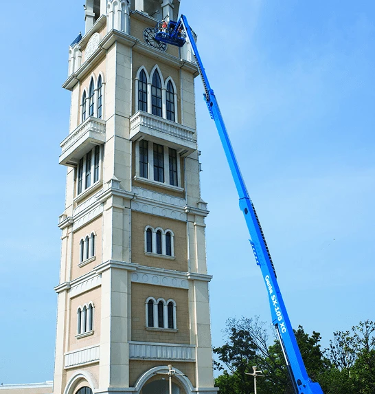 The Genie SX-105 XC telescopic boom lift has a maximum working height of 34.00m.