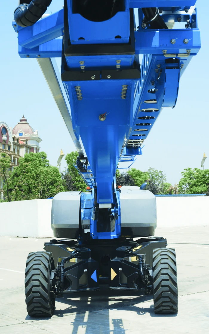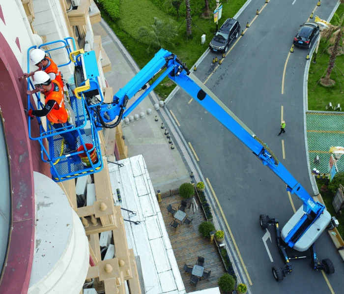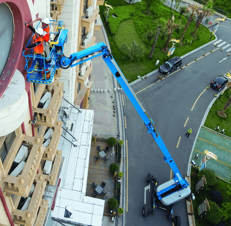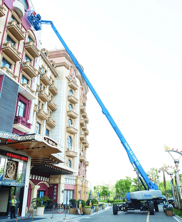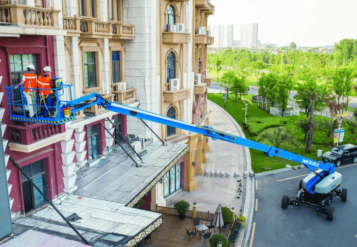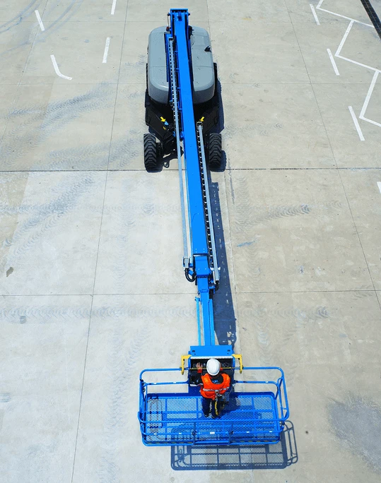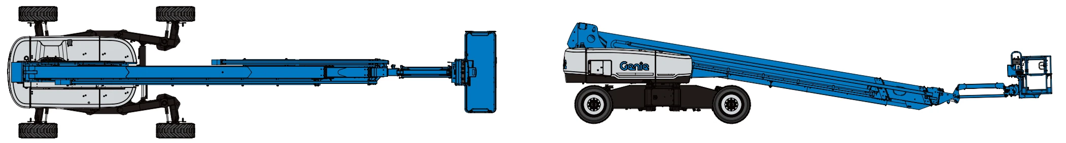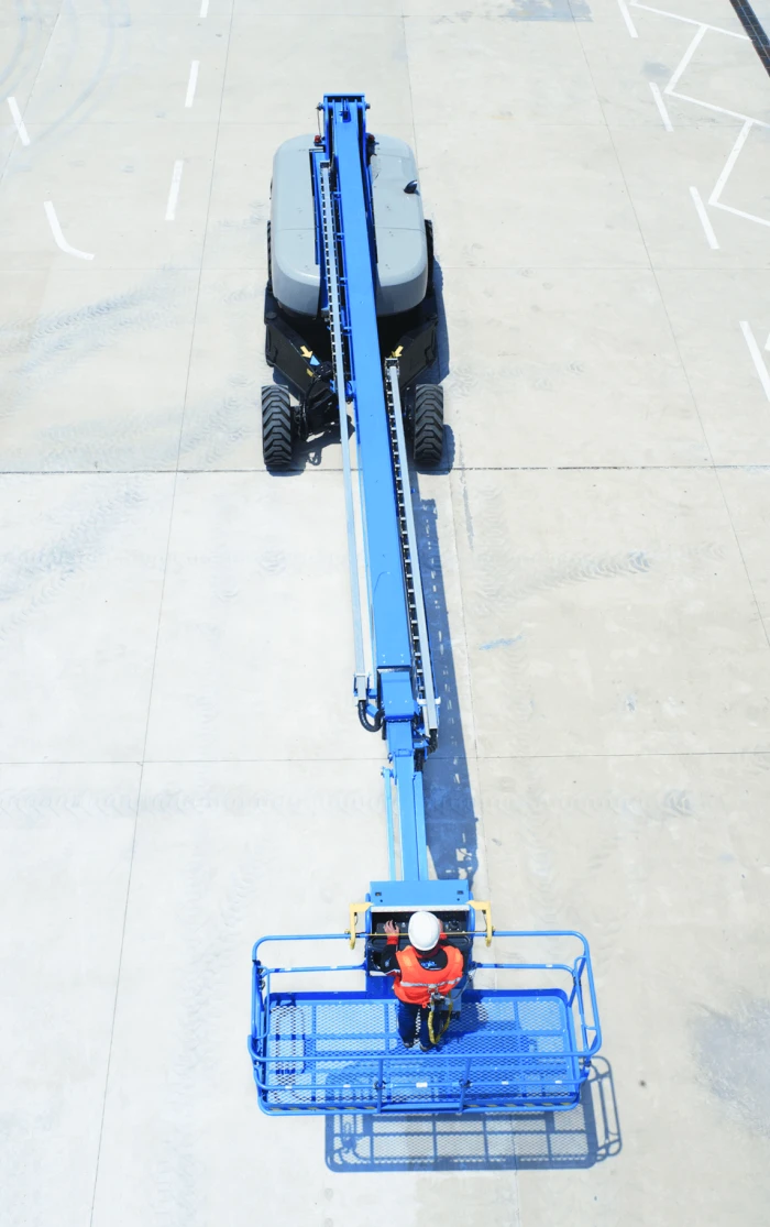 The Genie X-chassis design can retract, allowing for easy transport and extend for better stability when being operated.