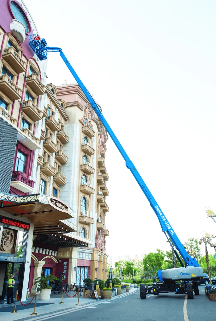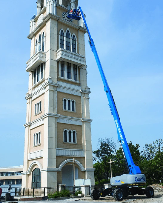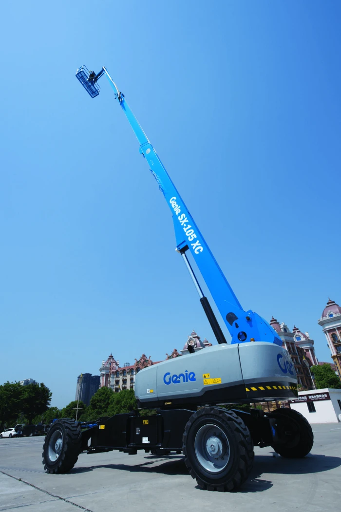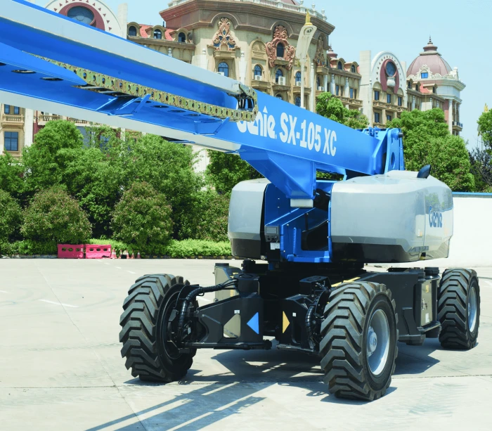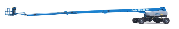 The Genie SX-105 XC provides extreme reach, dual lift capacity, and rough terrain capabilities.