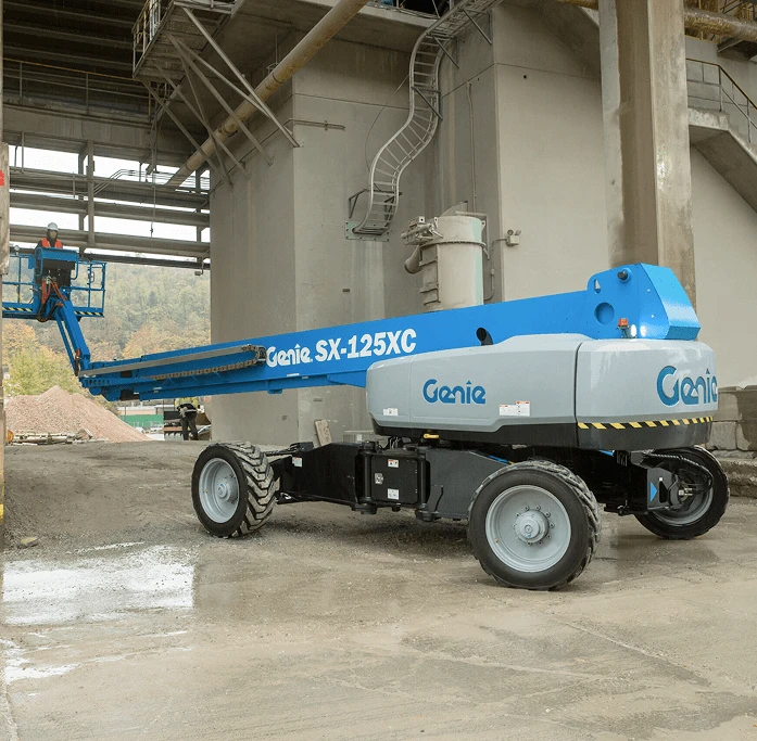 Genie SX-125 XC telescoping boom lift is built to deliver high-performance heavy lifting in some of the most challenging industries such as construction and bridge inspections, stadium maintenance, oil and gas, manufacturing facilities, telecommunications and utility applications.