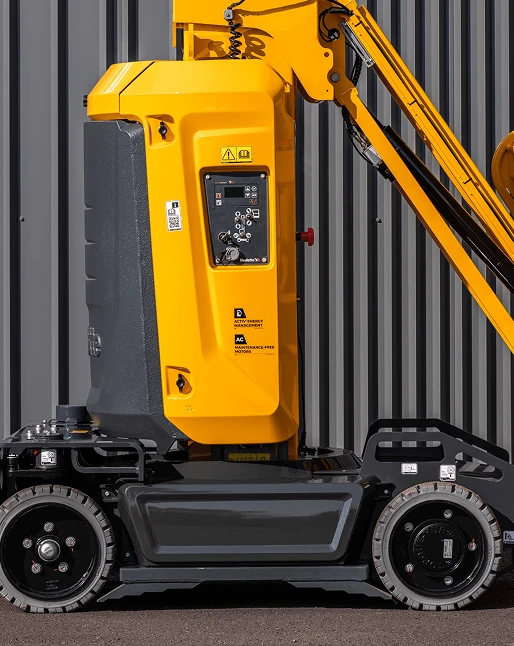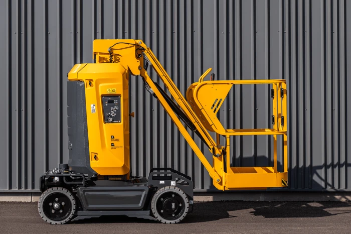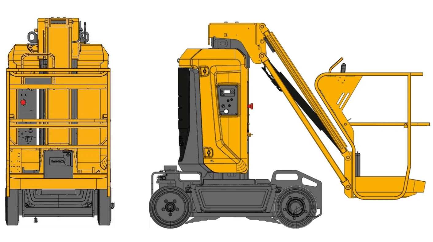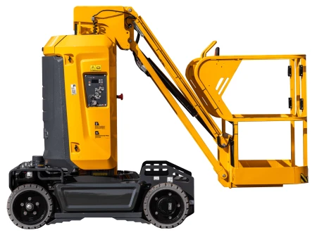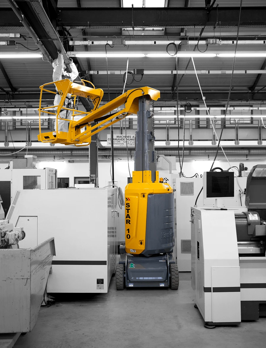 The Haulotte Star 10 is a highly maneuverable and compact vertical mast boom with high performance, the ideal solution for space-restricted areas. With a working height of 10.00m and a remarkable horizontal reach of 3.00m, it makes it a perfect solution for when working in narrow aisles, warehouses, and shops. Being only 1.00m in width and having zero tail swing enables the Star 10 to maneuver within tight spaces.