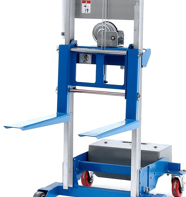 The GL8 Counterweight genie material lift has shorter legs and is equipped with a counterweight, which makes the material lift heavier than the GL8 standard base model.