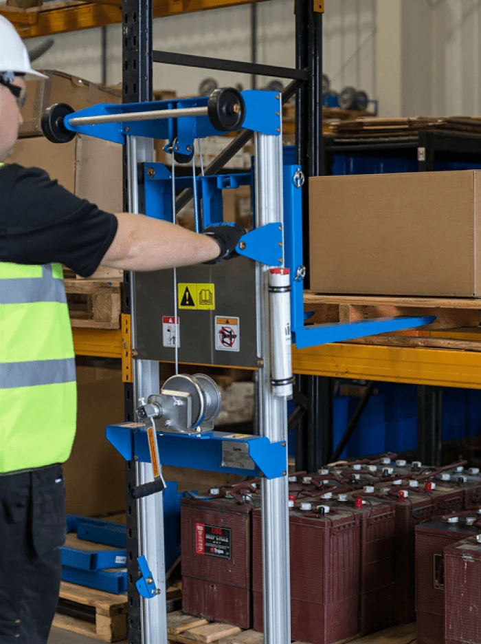 Equipped with a straddle base, this material lift can handle loads up to 0.91m as the legs can be extended laterally, a great solution to lift wider objects.