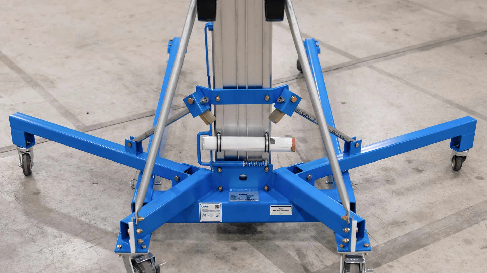 Portability and ease of use are key factors when using any of the Genie SLA models. Designed to be set up quickly with no tools required. The foldable legs and removable attachments make the material lift compact for storage. During transport, the hold-down bar securely fastens the mast assembly, offering extra peace of mind while moving between job sites.